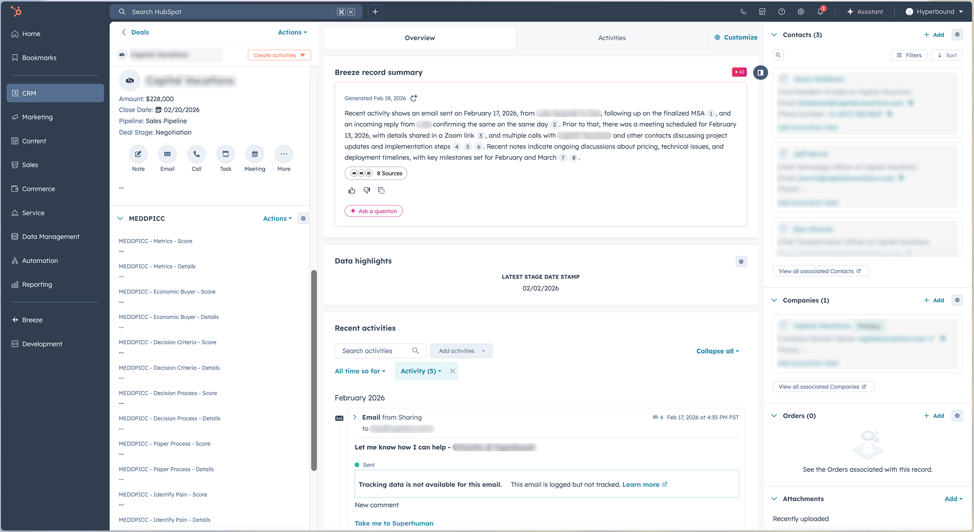 Instead of asking reps to remember and translate what happened on a call, Hyperbound analyzes the recorded conversation and extracts the structured deal attributes that matter — automatically.
