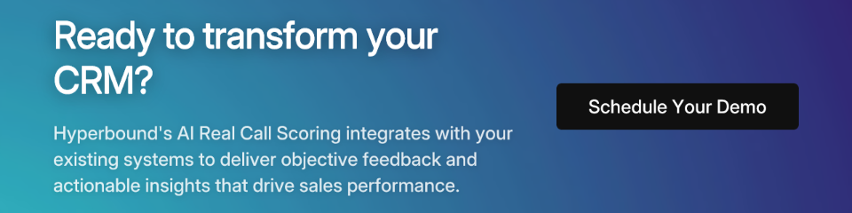 Ready to transform your CRM from a system of record into a system of readiness? Learn more about how Hyperbound can integrate AI-powered sales roleplays, call scoring, and coaching into your existing workflow.