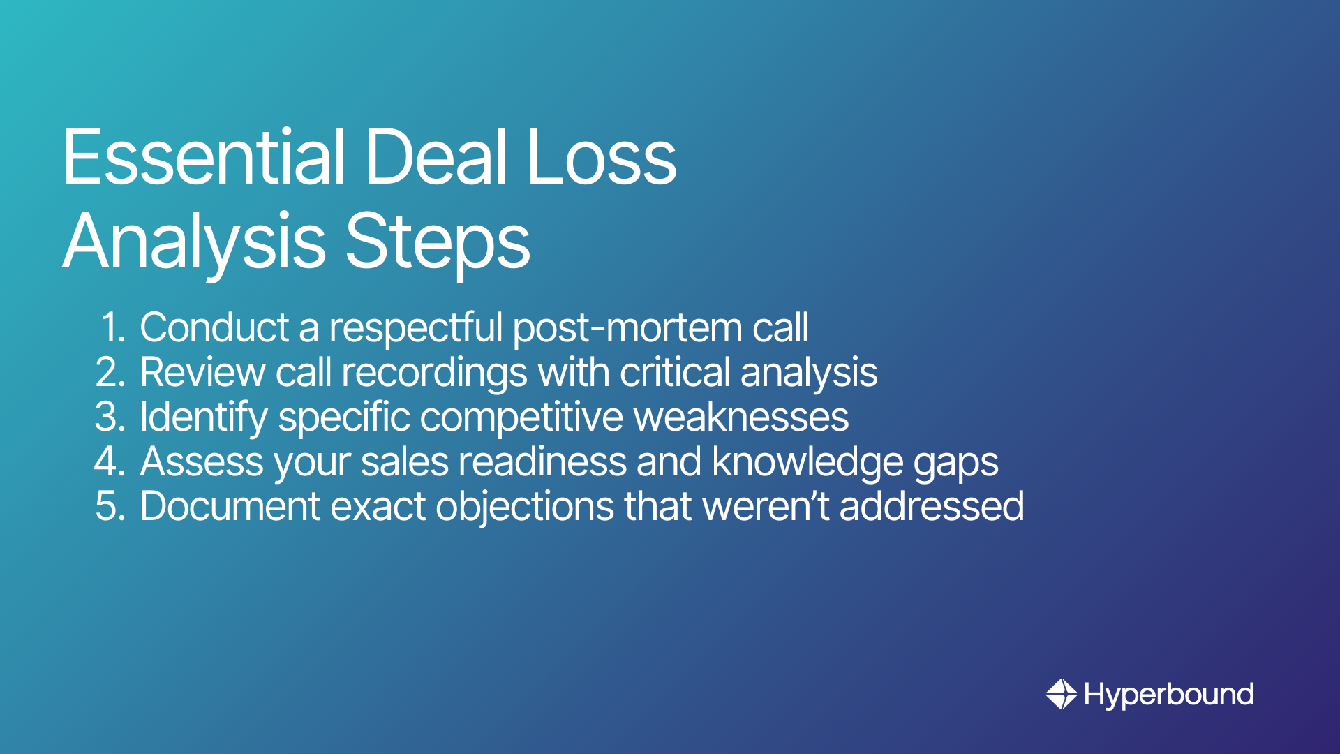 - Losing a deal is a critical learning opportunity; systematically deconstruct the loss to gather competitive intelligence and pinpoint specific weaknesses in your sales process.