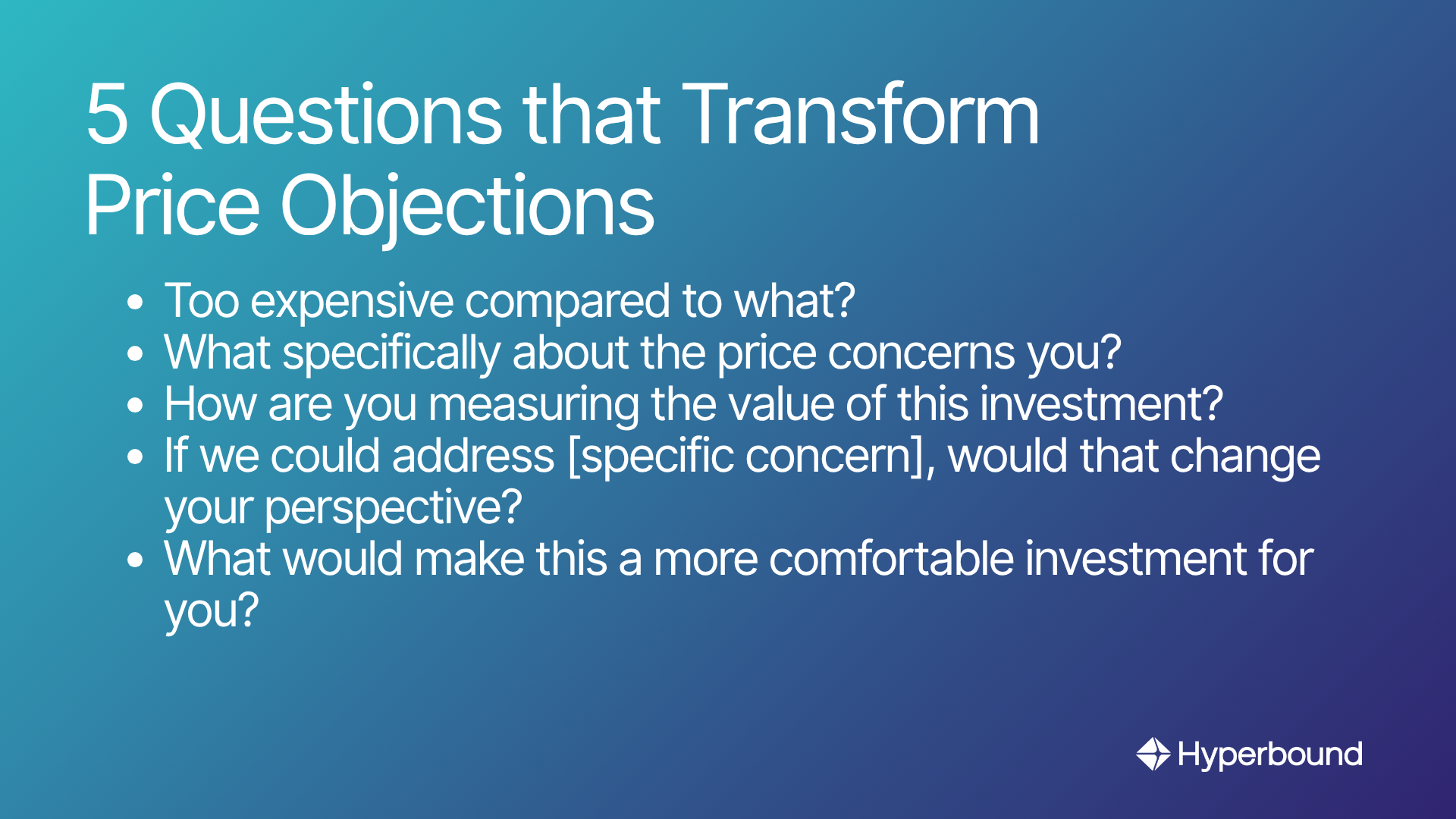 - "What specifically about the price concerns you?" This open-ended question invites them to articulate their real concerns.