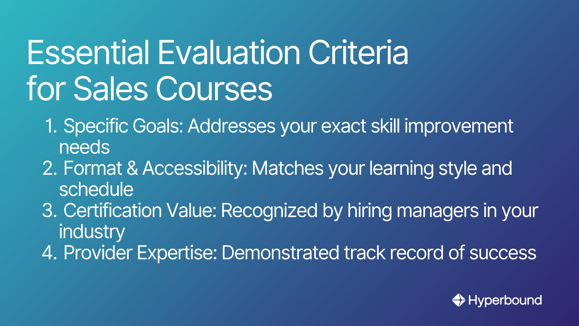 - Specific Goals: Does it address the sales behaviors you need to improve (e.g., objection handling, product knowledge)?